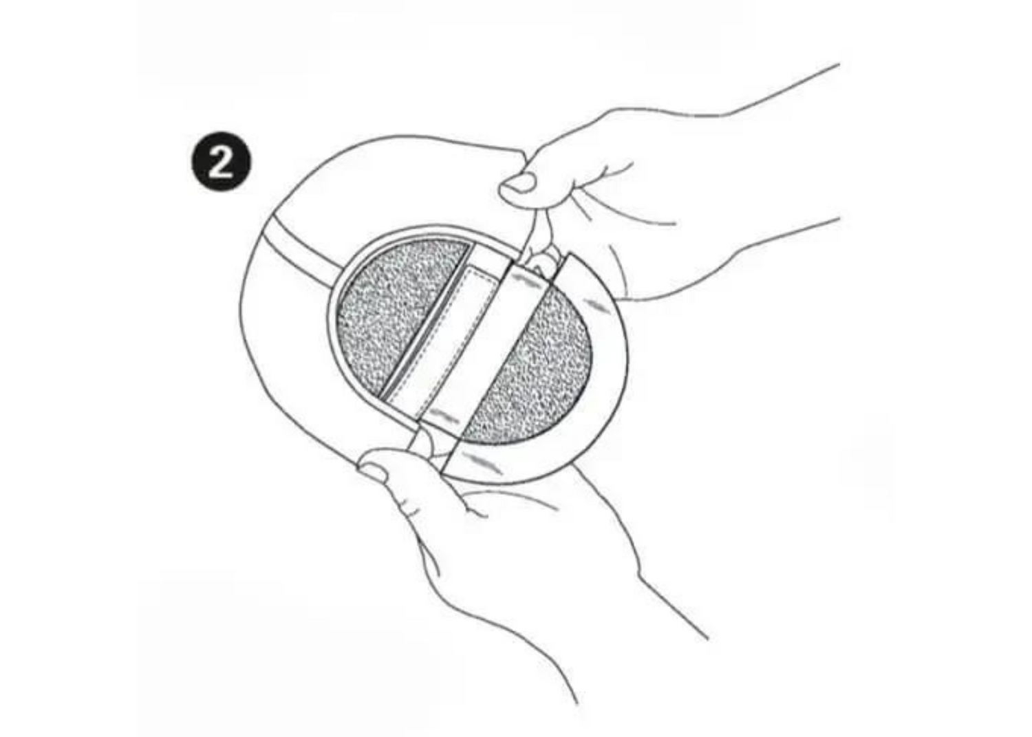 Place the larger flap of the Kap-Bak on the inside of your cap, aligning it with the crease.